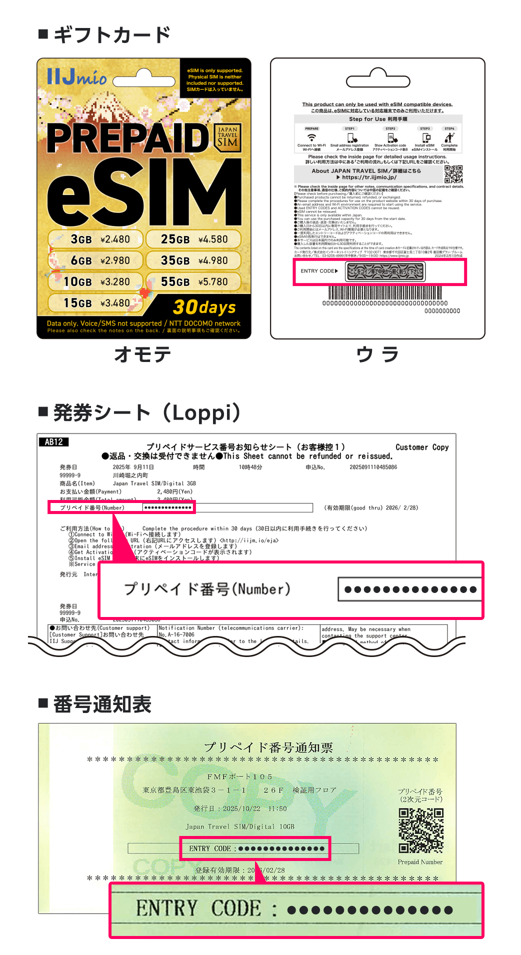 商品に記載のENTRY CODEを確認し、入力してください。